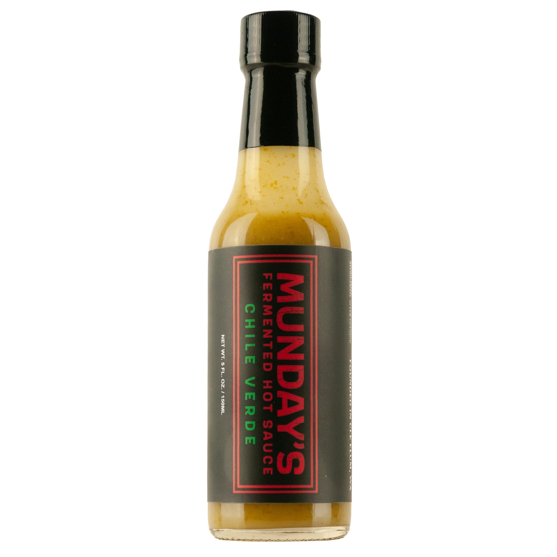 Our green Chile Verde sauce is sure to be a crowd pleaser. While it may be the least spicy of our line-up, it still packs plenty of punch highlighted by Serrano chilis. Reminiscent of the classic flavors and aromas associated with your favorite green tomatillo Mexican Chile Verde dish, with bright acidity. Featuring our signature Kombucha fermentation method. Perfect for tacos, eggs, chicken, pork, burgers, sauces, & soups.